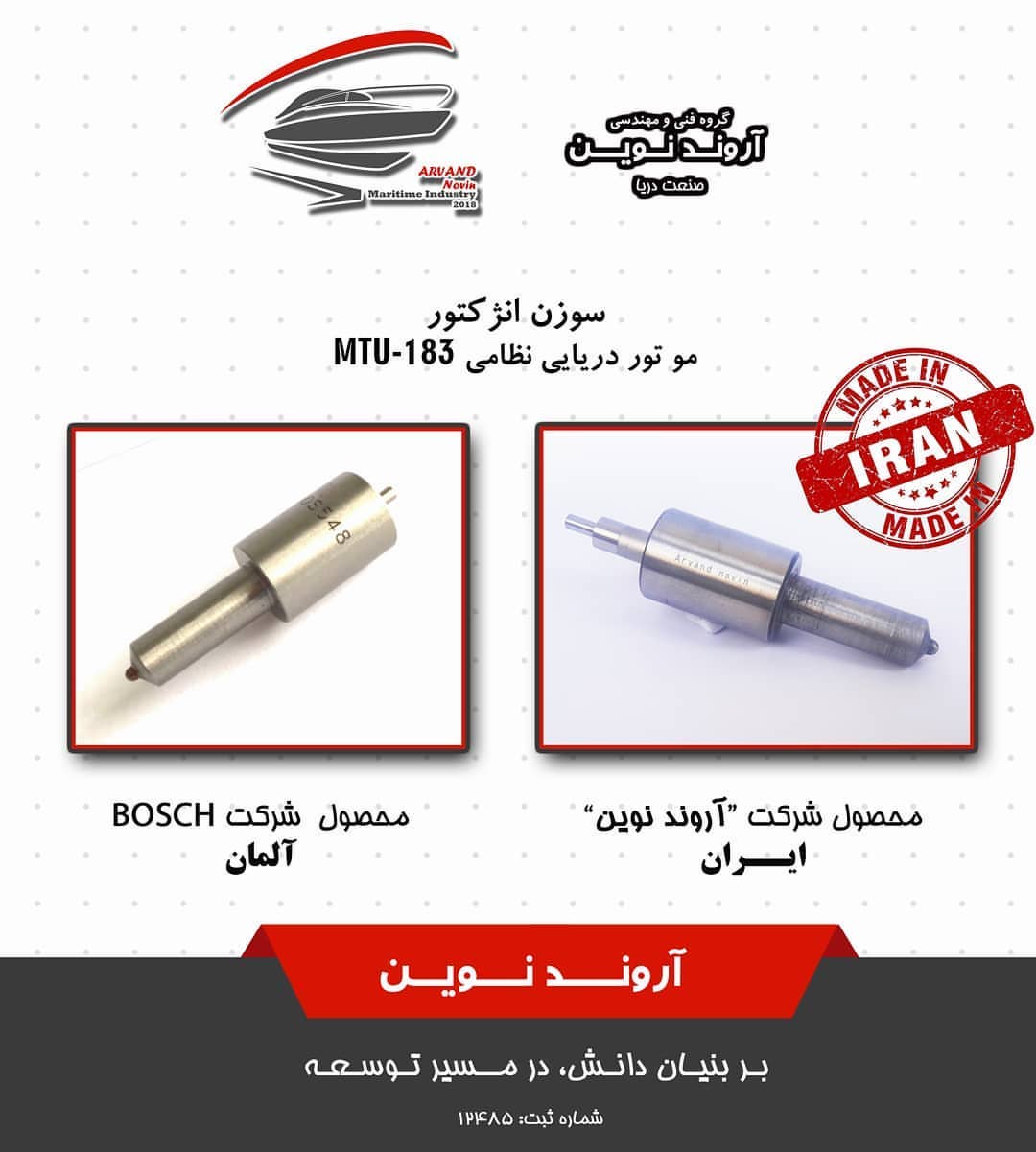 : مهندسی کعکوس ،طراحی و تولید سوزن انژکتور موتور دریایی MTU برای نخستین بار در کشور توسط شرکت "آروند نوین صنعت دریا"