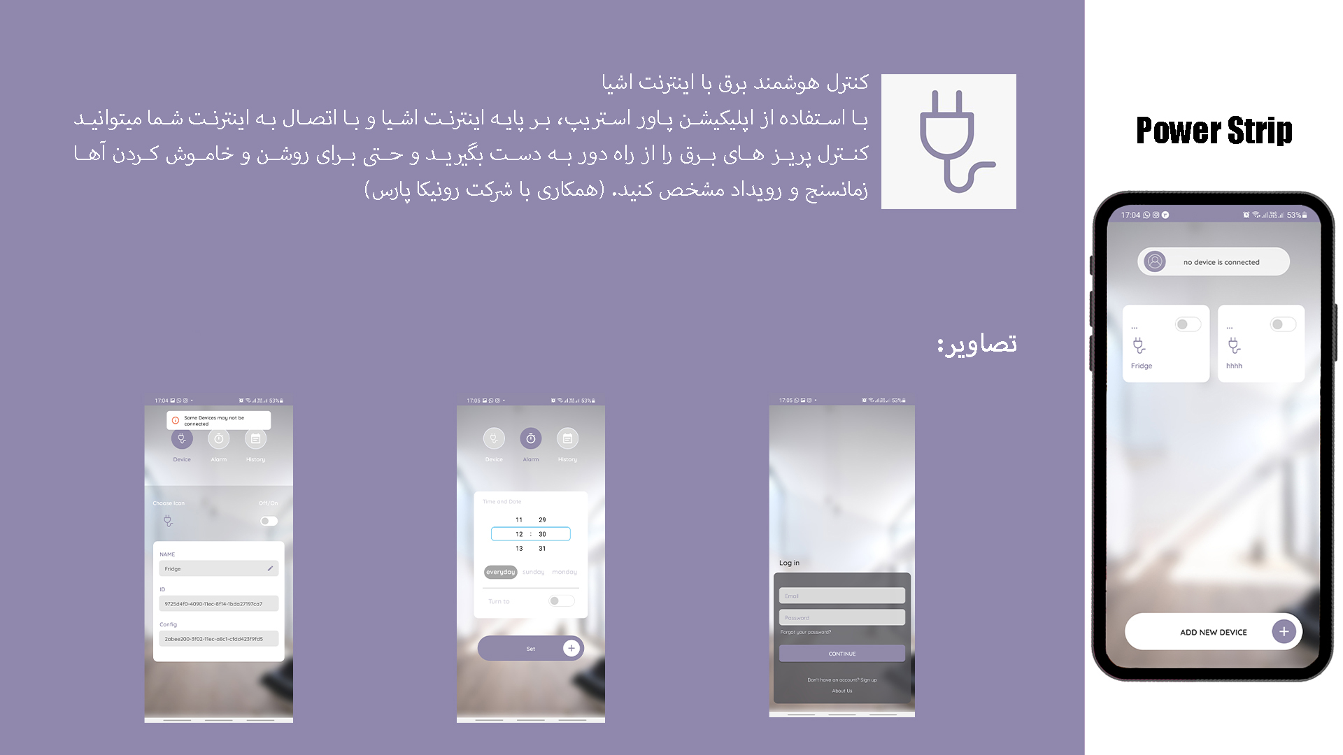 : این اپلیکیشن به سفارش رونیکا برای پلتفرم موبایل در تیر ماه 1400 شروع به توسعه کرد. کاری که این برنامه انجام میدهد کنترل کلید خاموش و روشن شدن یک کلید برق هوشمند از راه دور و از طریق اینترنت است.