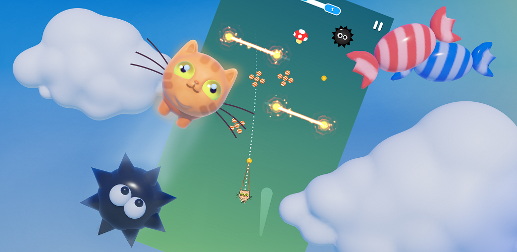 You control a cat Balloons 3D that can pin to almost anything. Time the moving arrow and pull to jump.